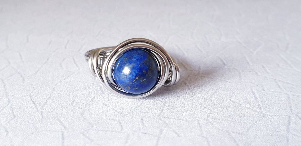 Lapis Lazuli Stacking Ring, Wire Wrapped, Hypoallergenic Stainless Steel, Spiral Boho Design, Handmade Jewellery