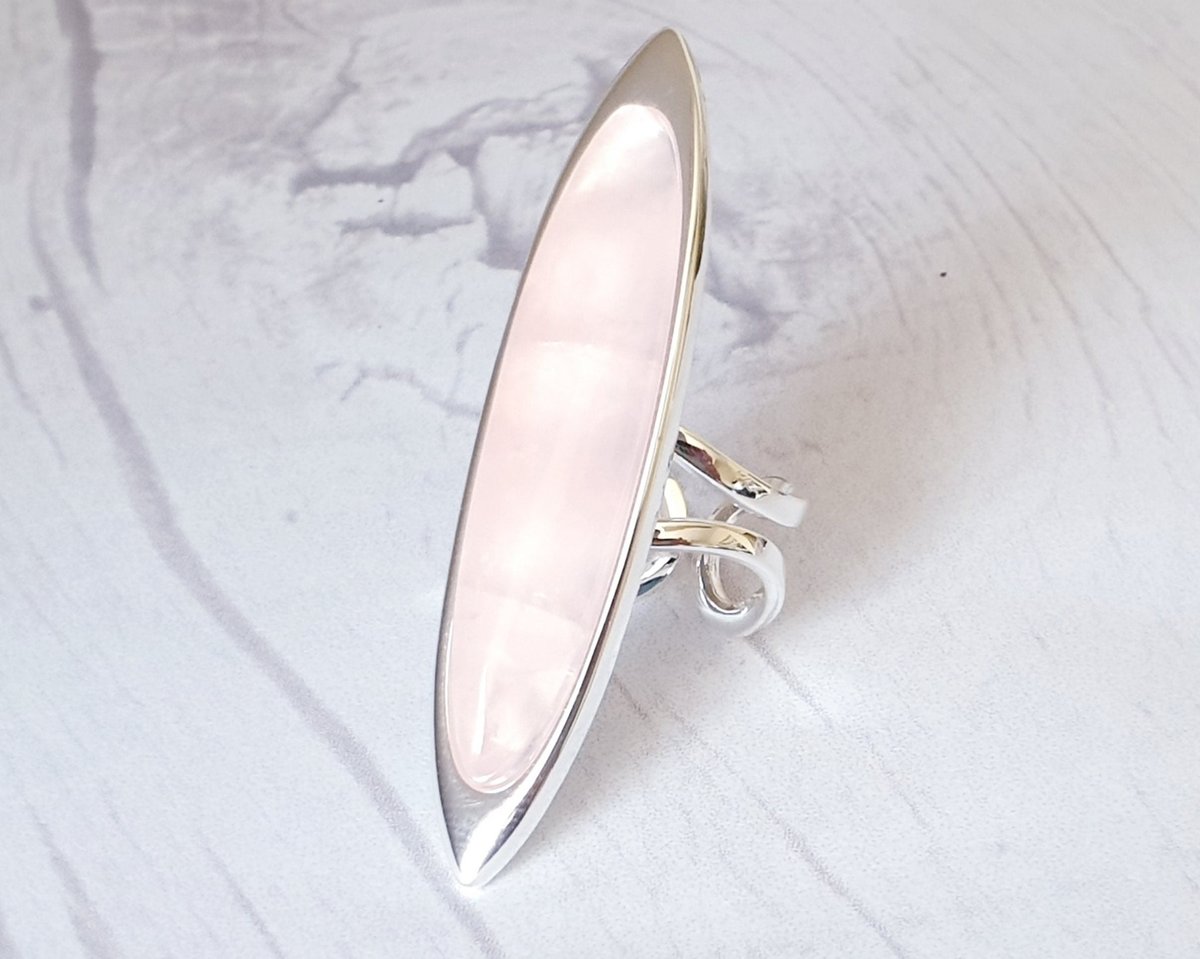Rose Quartz Cuff Ring: Adjustable Boho Statement Jewelry